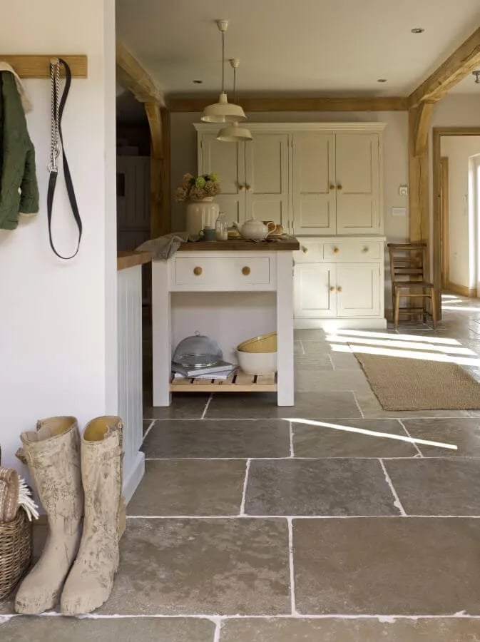 York stone flagstones — a harder-wearing sandstone from Yorkshire, widely used in kitchens and hallways